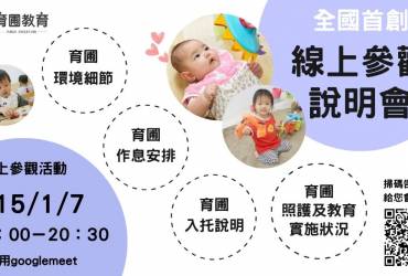 育圃托嬰中心 │ 育圃嬰兒課體驗會 想給寶寶最棒的啟蒙與陪伴嗎?好奇0-1.5歲的寶寶在托嬰中心裡的學習嗎?育圃為您設計了一場結合專業與樂趣的「嬰兒課體驗活動」,讓您和寶寶一 ...