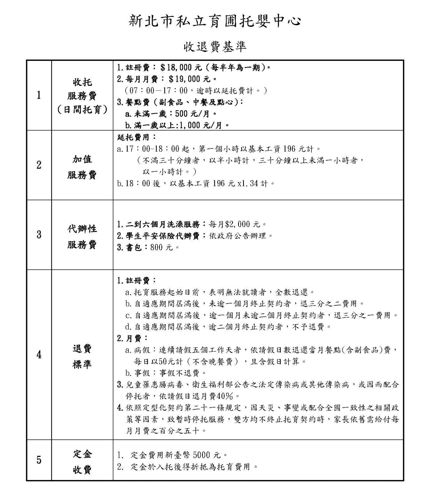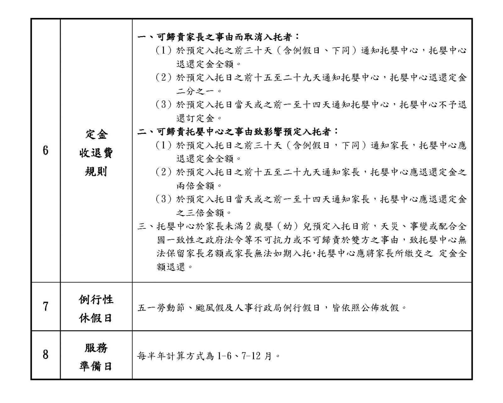 十一、收退費基準